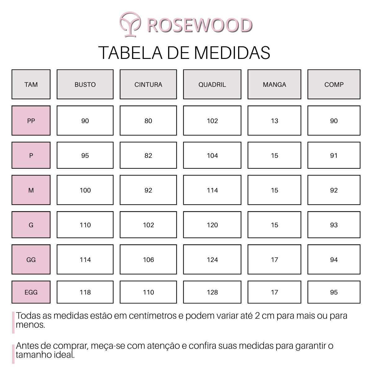Tamanhos Disponíveis: PP, P, M, G, GG e EGG